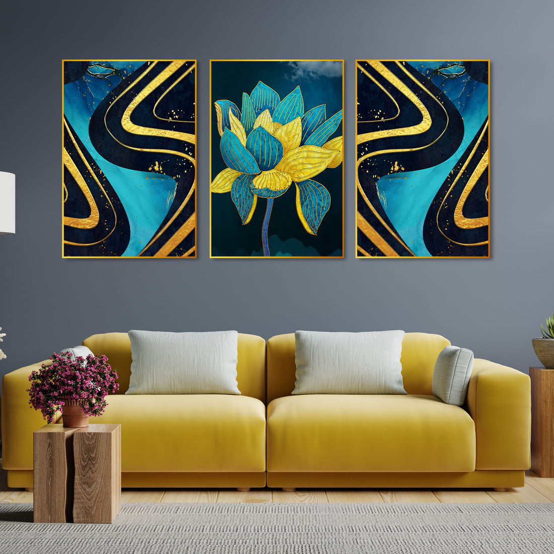 Answer: The necessity of three-piece paintings stands in the fact of how they can match the symmetry of your walls. They can quickly fill up large spaces without looking insufficient. They highlight the essence of geometry and look astonishing when you place them in the right arrangement.