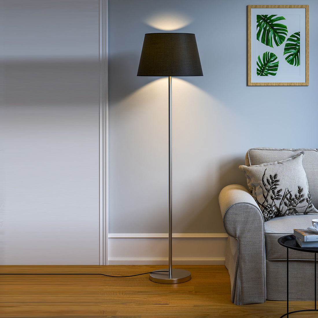 Premium Standing Modern Black Floor Lamp with Black Metal Shade