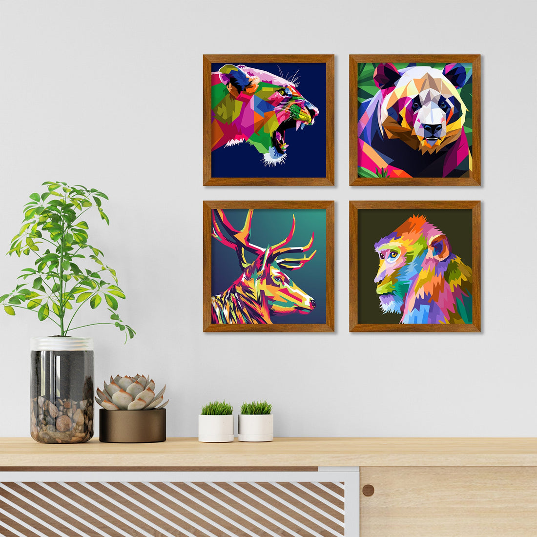 Modern Colorful Texture Wild Animal Face Art Wall Frame Set of Four