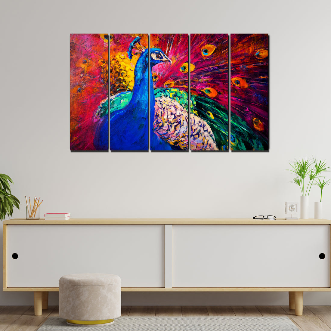 Beautiful Peacock Canvas Wall Painting 5 Pieces
