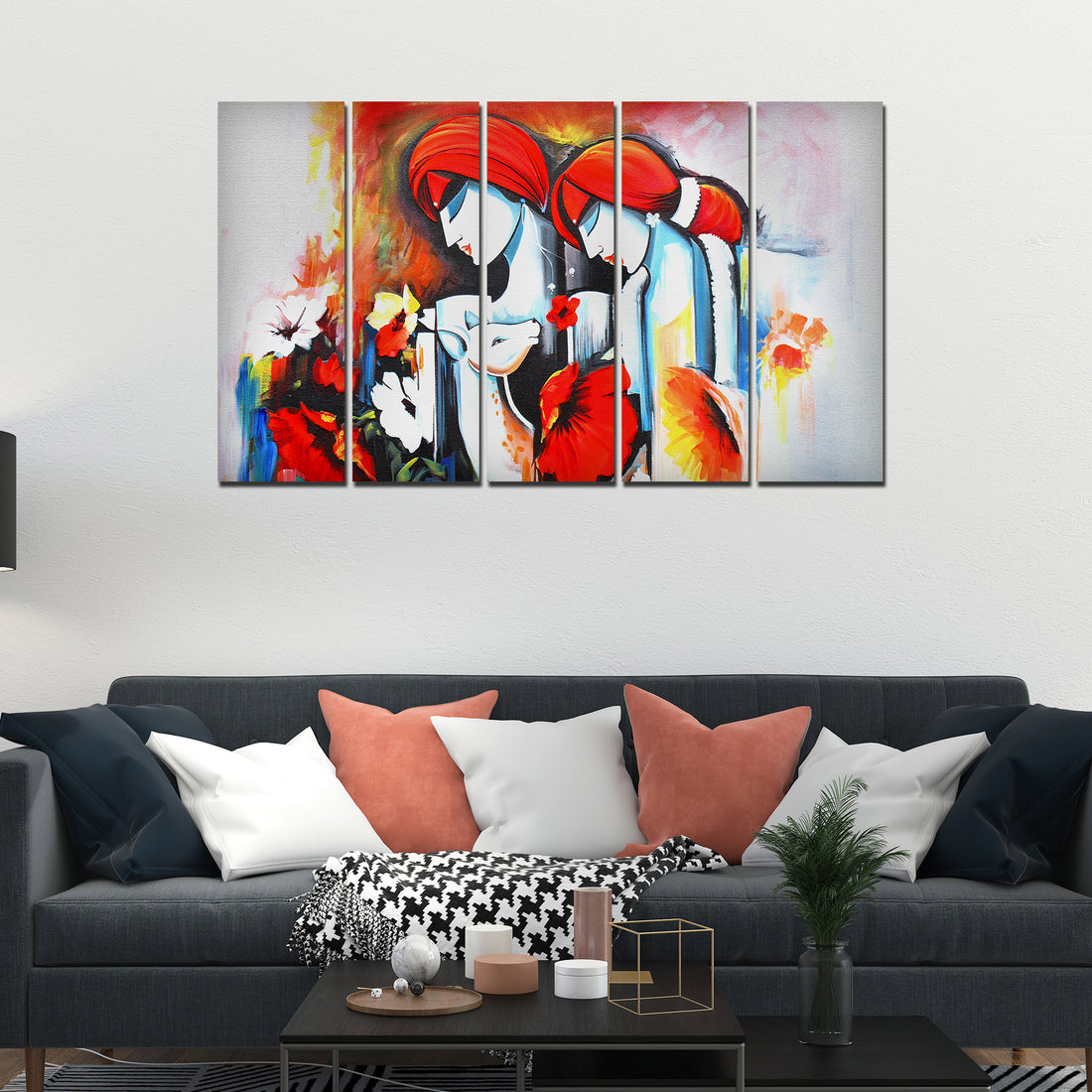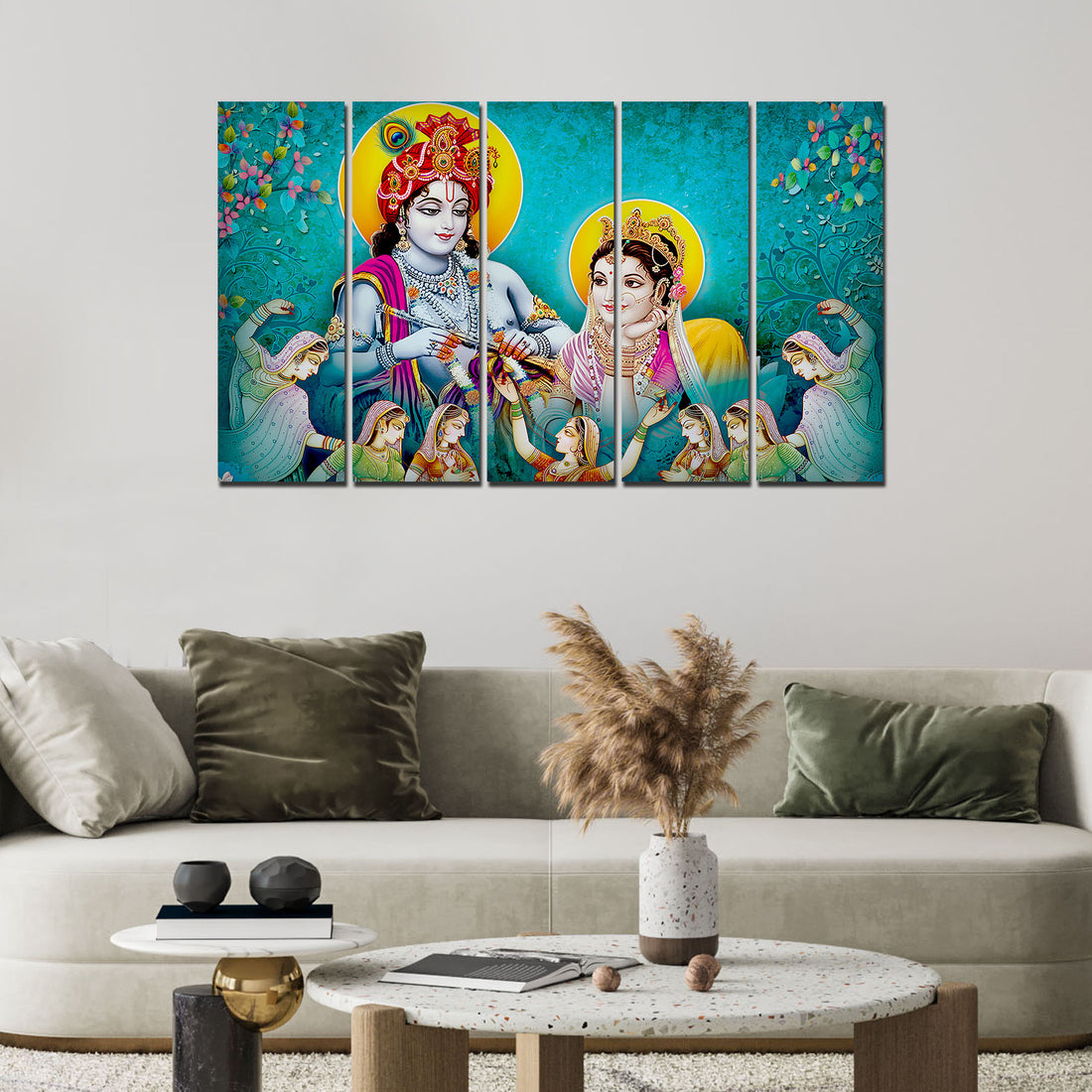 Lord Radha Krishna Canvas Wall Painting 5 Panel Set