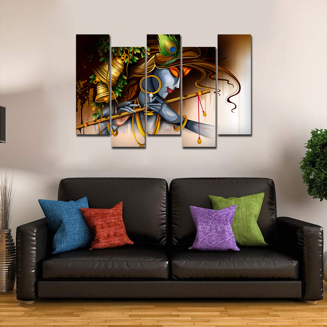 5 Pieces Canvas Wall Painting of Lord Krishna Playing Flute