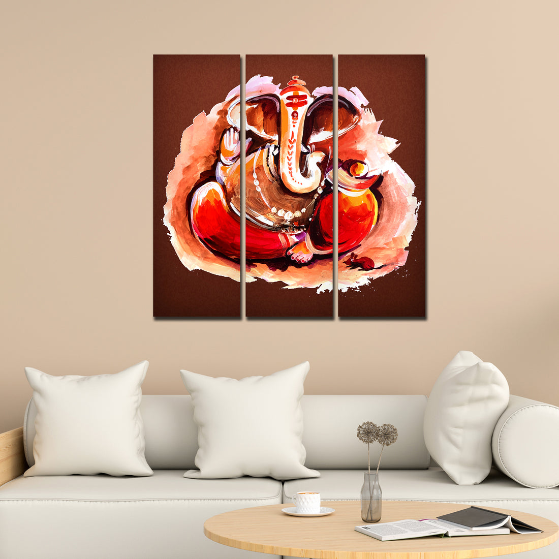 Lord Ganesh Canvas Wall Painting of Three Pieces