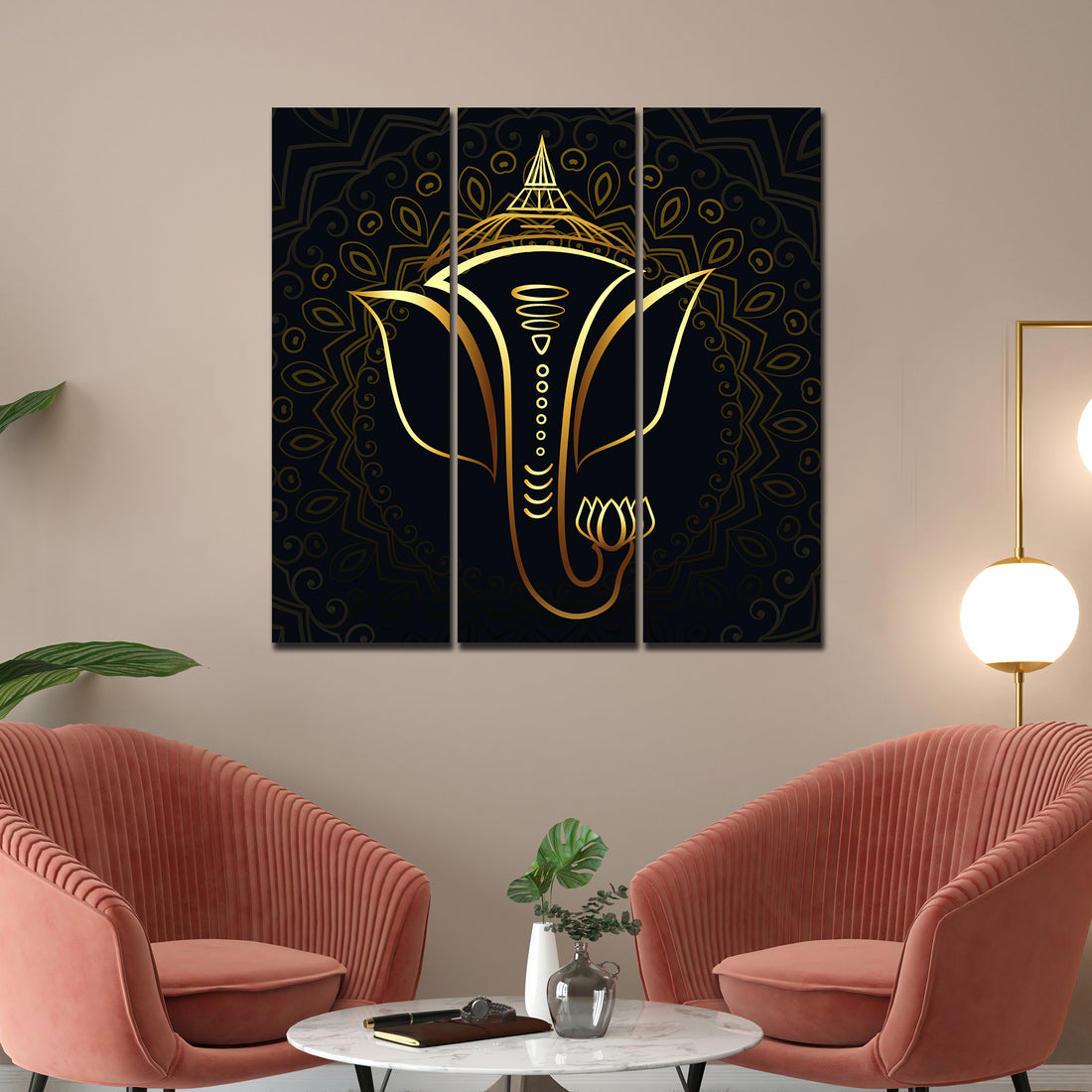 Auspicious Lord Ganesha Head Canvas Wall Painting of Three Pieces