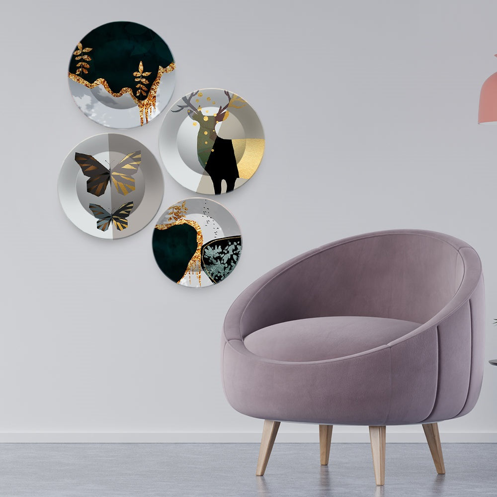 Modern Decorative Animals Art Wall Plates Set of 4