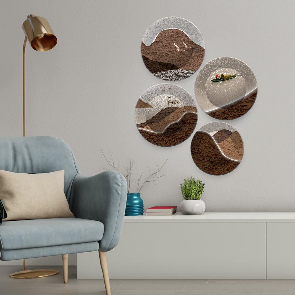 Premium Mountain Landscape Scenery Painting Wall Plates Set of 4