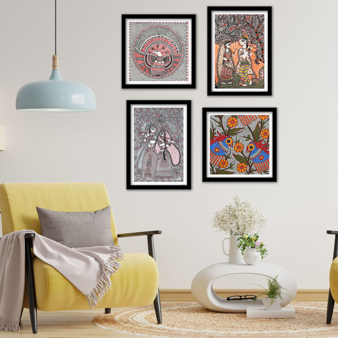 Radha Krishna Decorative Madhubani Wall Frame Set of Four