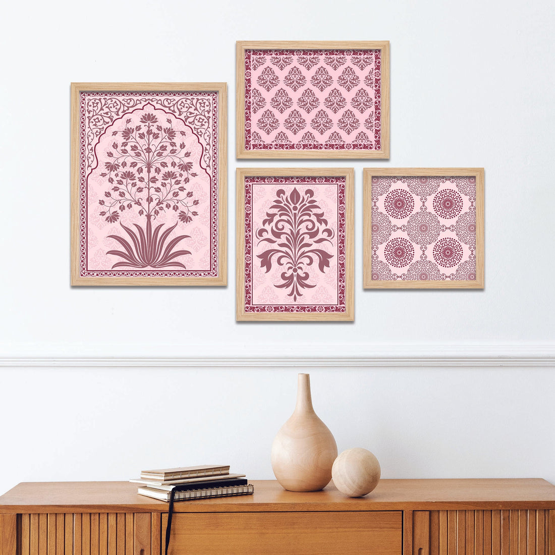 Traditional Flower Pattern with Pink Shade Art Wall Frame Set of Four
