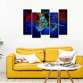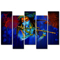 5 Pieces Canvas Wall Painting of Lord Krishna Playing Flute in Dark Forest