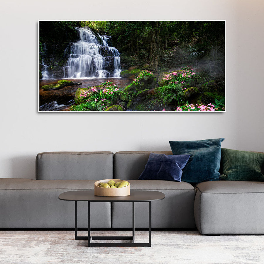 A Beautiful Waterfall in Forest Premium Canvas Wall Painting