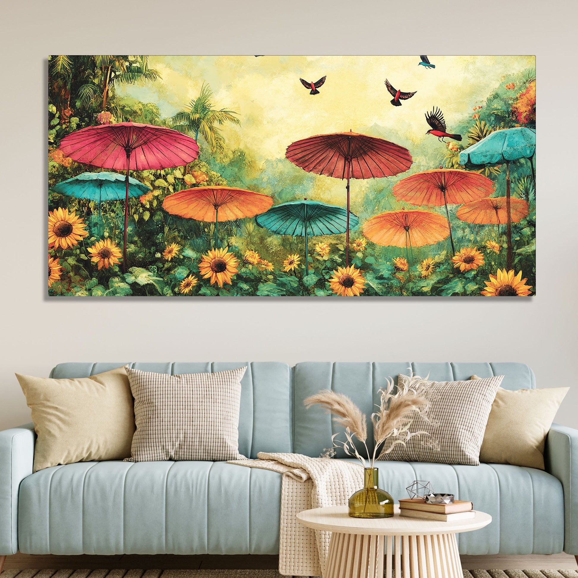 Abstract Colorful Umbrella with Wildflowers Nature Art Canvas Wall Painting