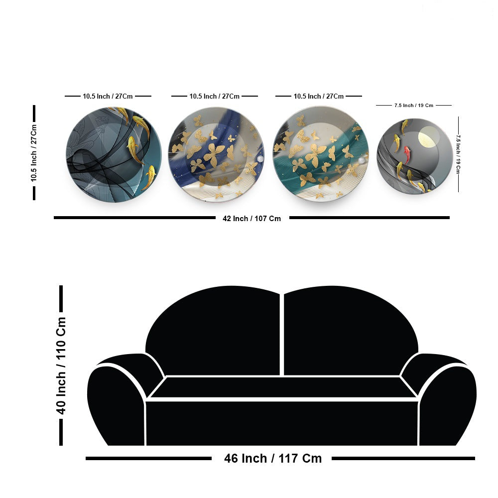 Abstract Golden Butterflies Premium Wall Plates Painting Set of Four