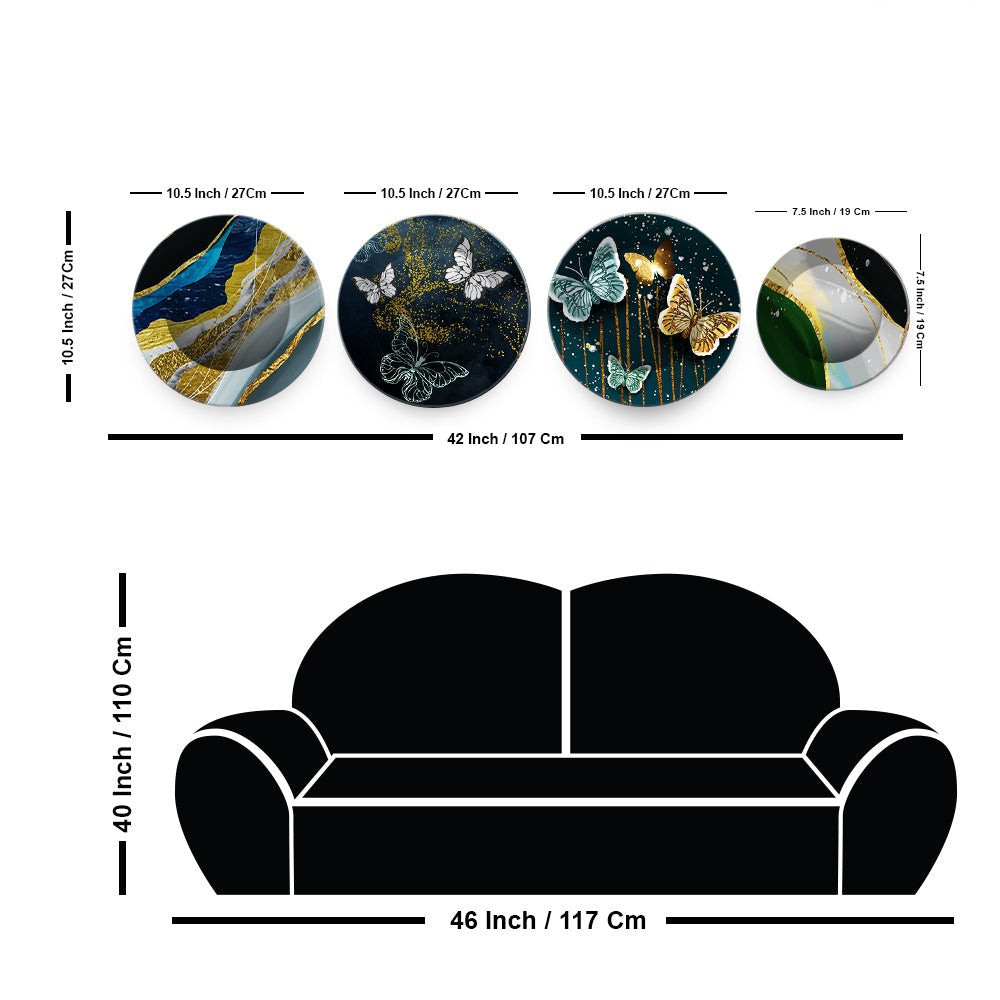 Abstract Golden Textured Art with Butterflies Wall Plates Painting Set of Four