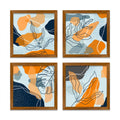 Abstract Leaves Line Art Wooden Wall Frame Set of Four