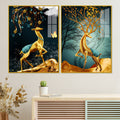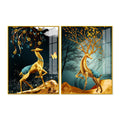 Abstract Luxury Golden Deer Acrylic Art Floating Wall Painting Set Of 2