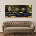 Abstract Midnight Golden Scenery with Deer Canvas Wall Painting