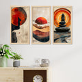 Abstract Mountains View Wooden Wall Frame Set of Three