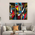 Abstract Pattern Faces Canvas Wall Painting Set of 3 Pieces