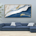 Abstract Seascape Blue and Gold Line art Canvas Wall Painting