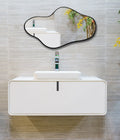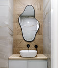 Asymmetrical Irregular Bathroom Decor Mirror with Black Wooden Finish