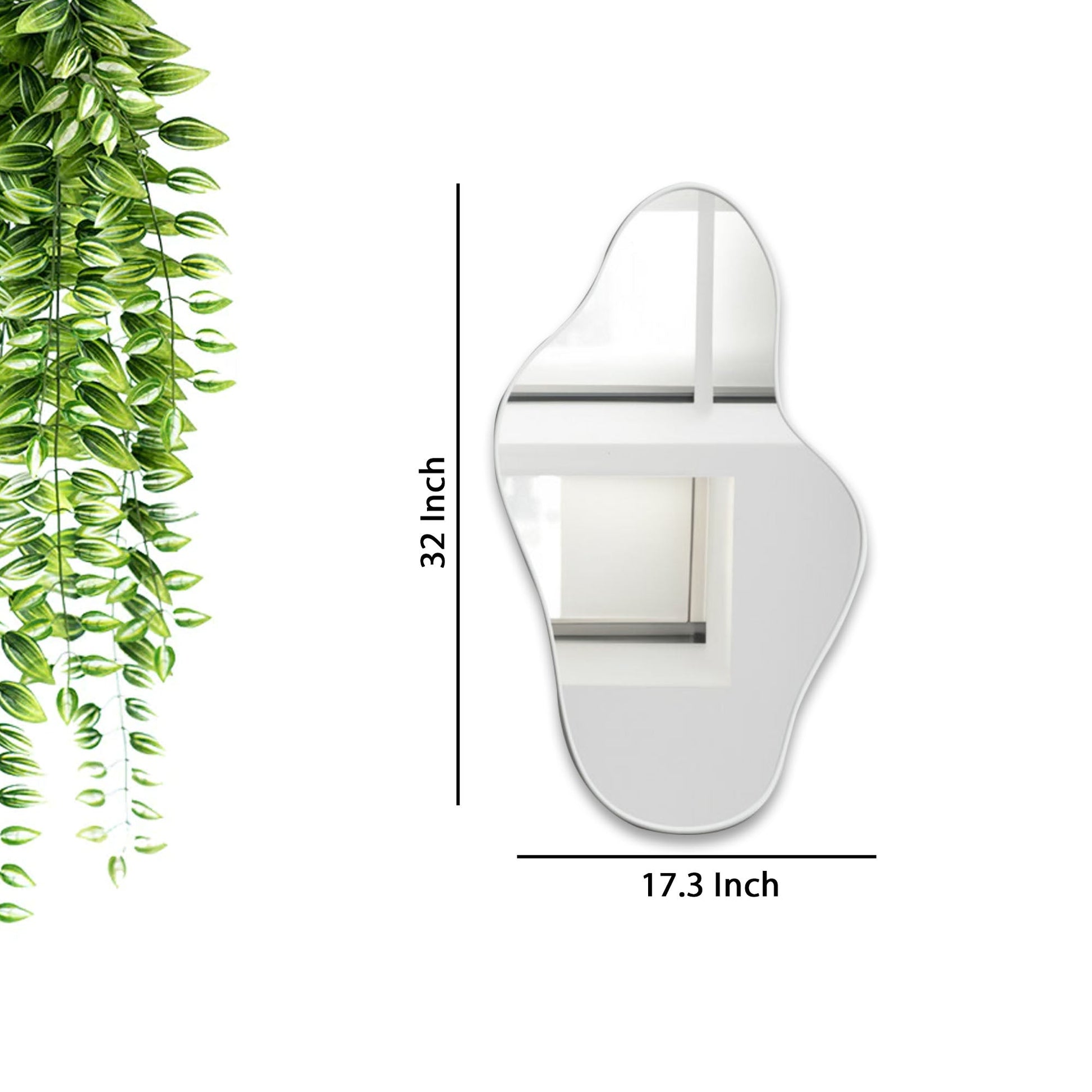 Asymmetrical Irregular Bathroom Decor Mirror with White Wooden Finish