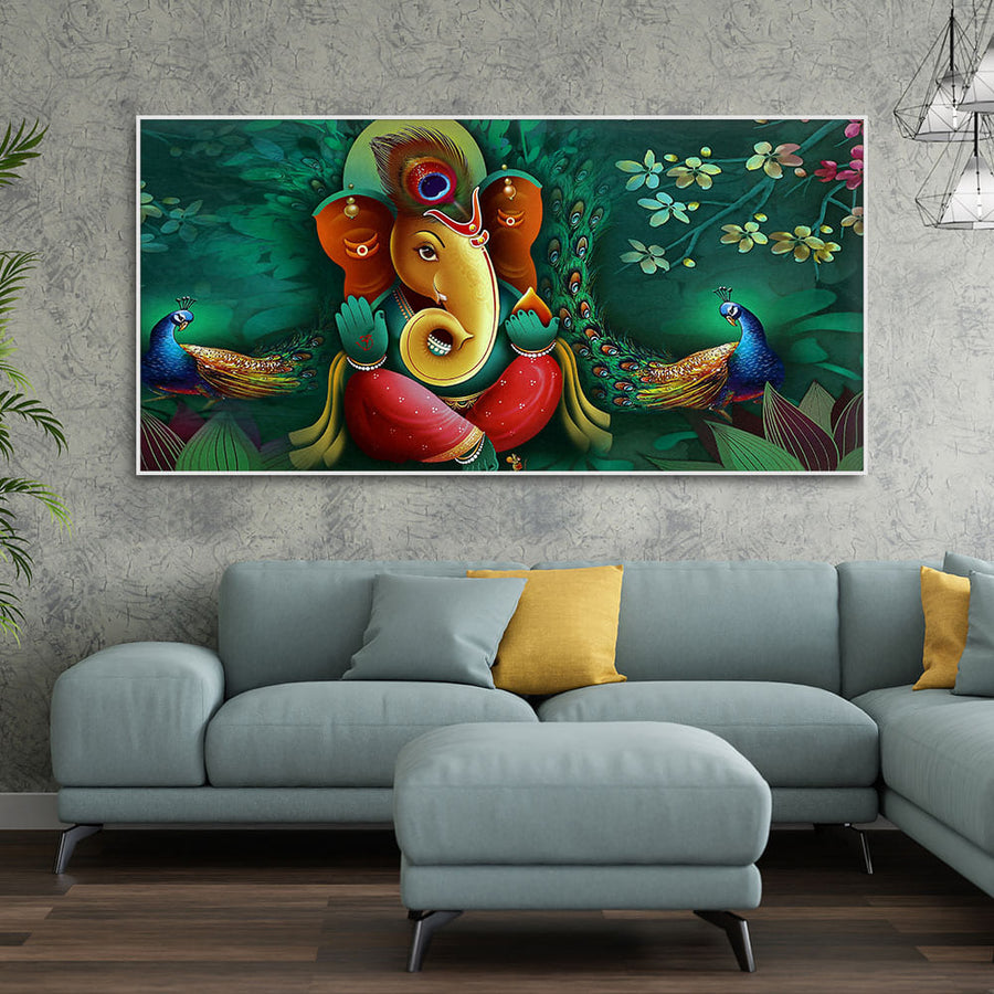 Auspicious Lord Ganesh Premium Canvas Wall Painting