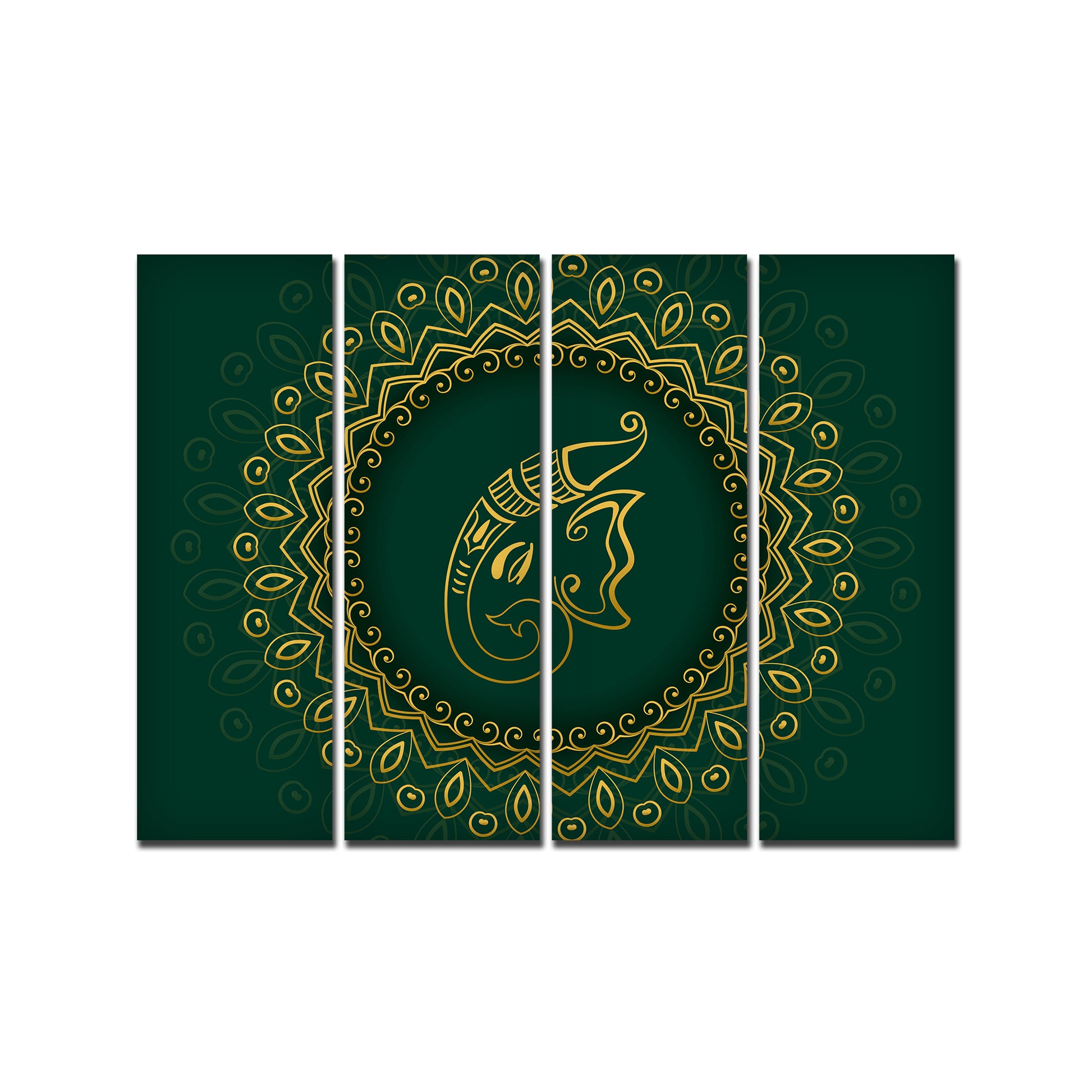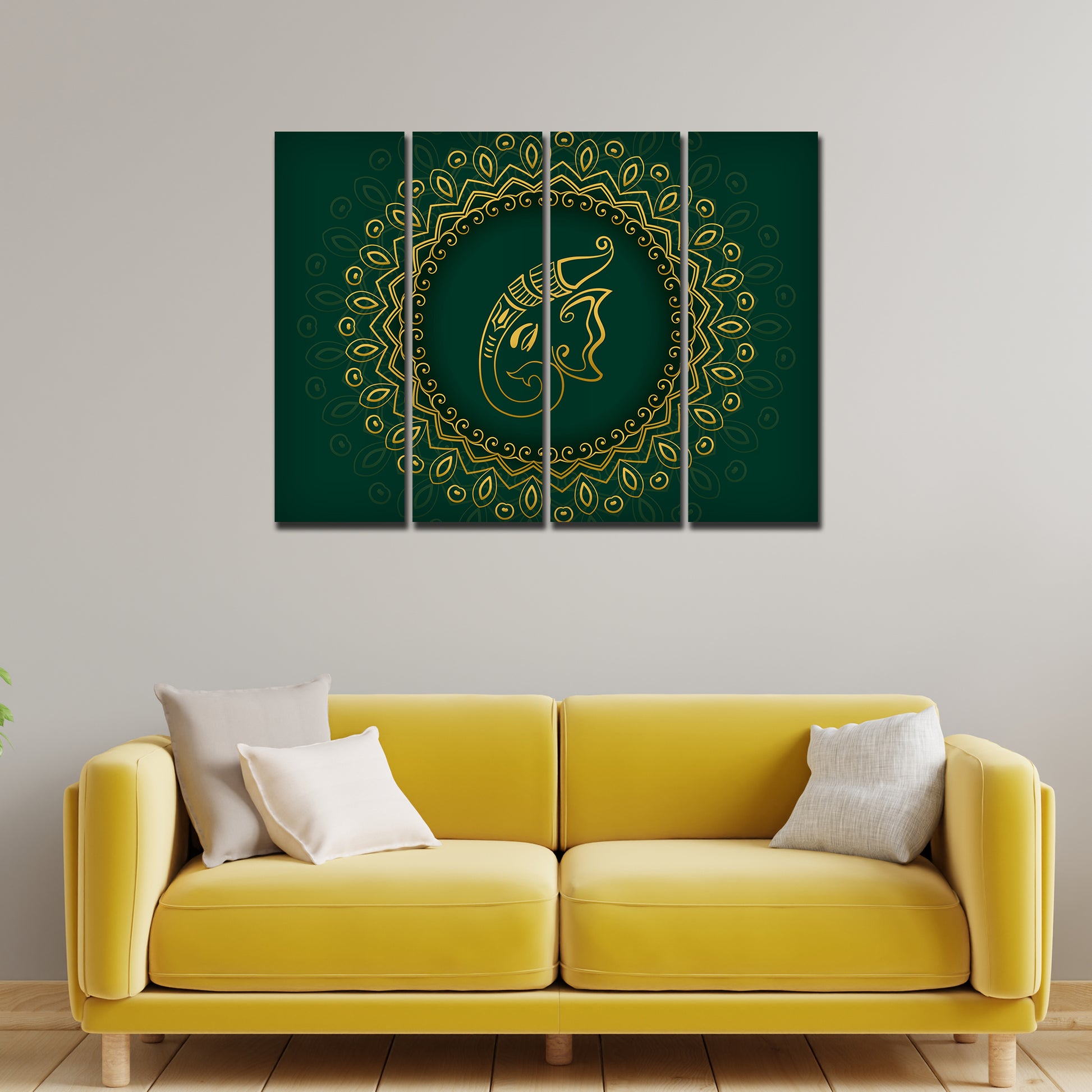 Auspicious Lord Ganesha Head Canvas Wall Painting of 4 Pieces