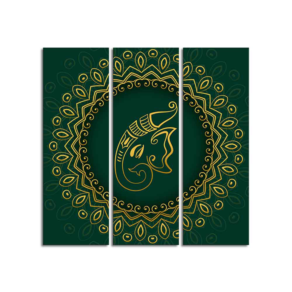 Auspicious Lord Ganesha Head Canvas Wall Painting of Three Pieces