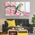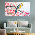 Beautiful Bird on Tree Branch Wall Painting of Five pieces
