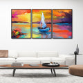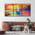 Beautiful Colorful Sea with Ship Premium Floating Wall Painting Set of Three