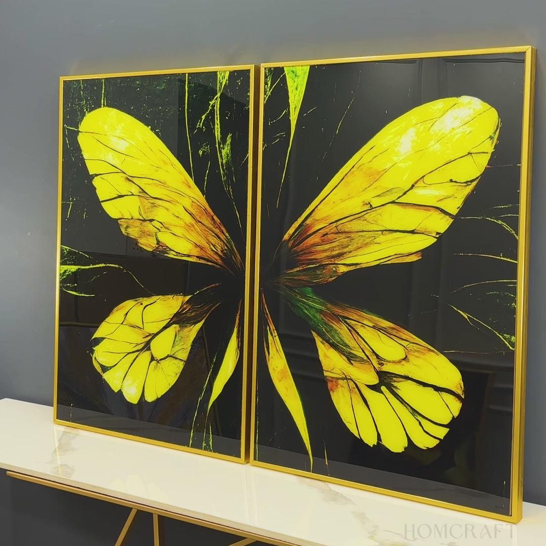 Beautiful Design of Golden Wings Art Acrylic Floating Wall Painting Set Of 2