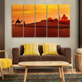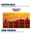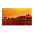 Beautiful Five Pieces Wall Painting of Camel Caravan Heading to Taj Mahal
