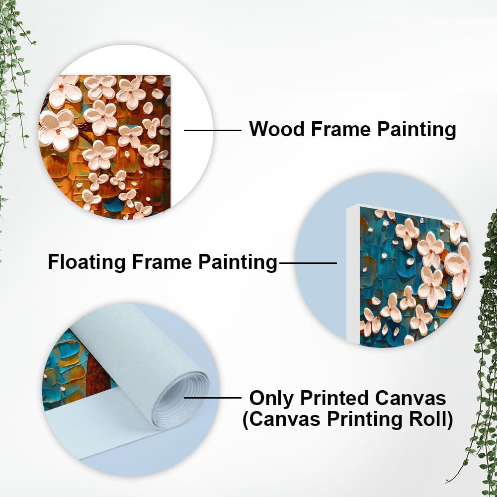 Beautiful Floral Tree Art with White Flower Premium Canvas Wall Painting