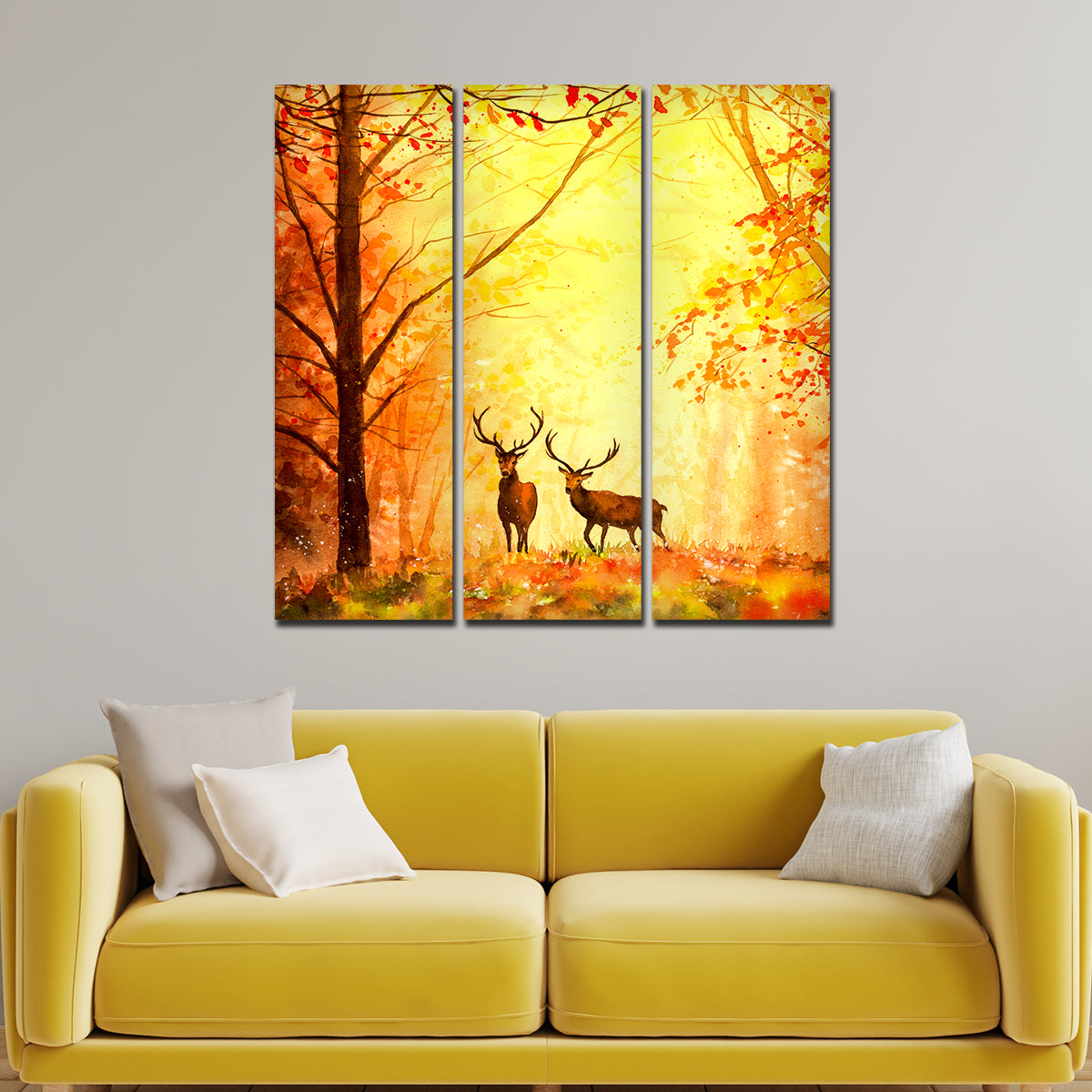 Beautiful Forest Deer Canvas Wall Painting of 3 Pieces