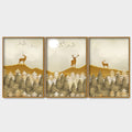 Beautiful Golden Deers Premium Floating Canvas Wall Painting Set of Three