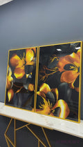 Beautiful Golden Flower Premium Acrylic Floating Wall Painting Set Of 2