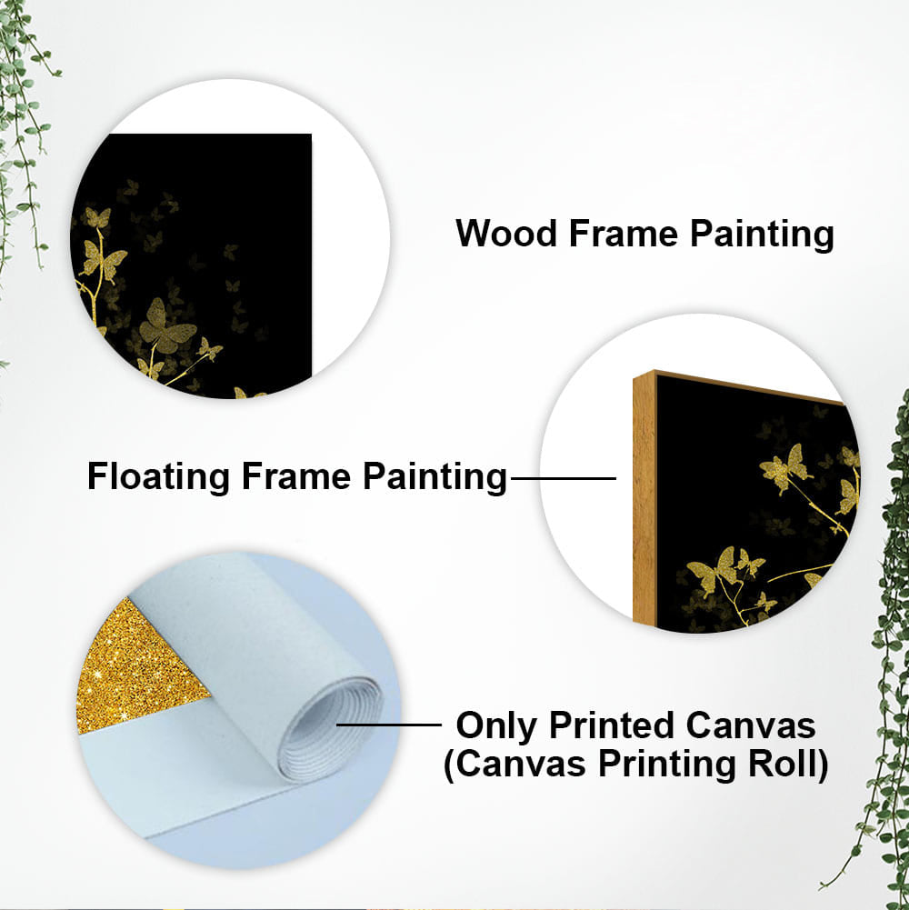 Beautiful Golden Tree Butterfly Premium Canvas Wall Painting