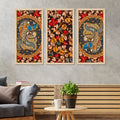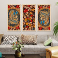 Beautiful Kalamkari Floral Art Wooden Wall Frame Set of Three