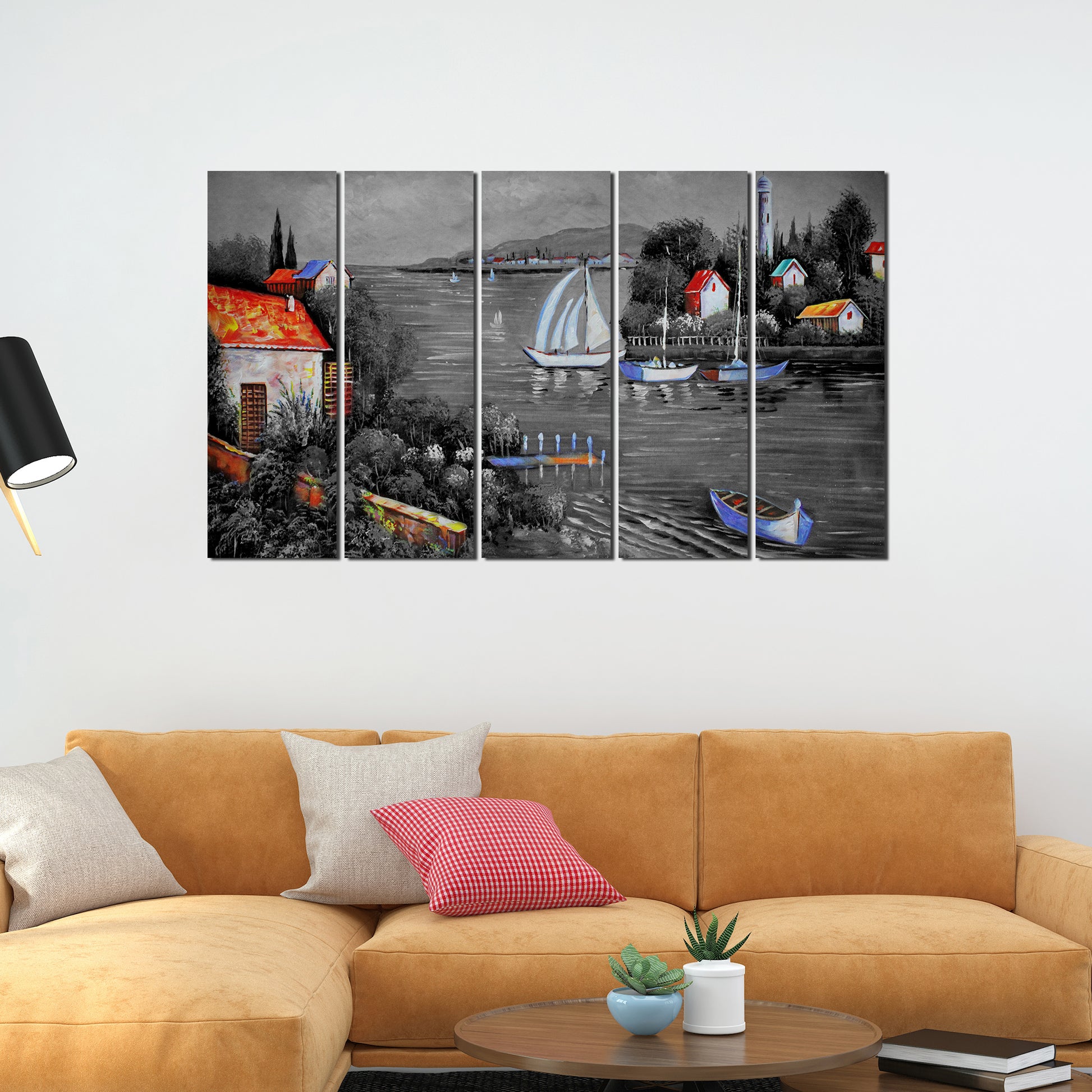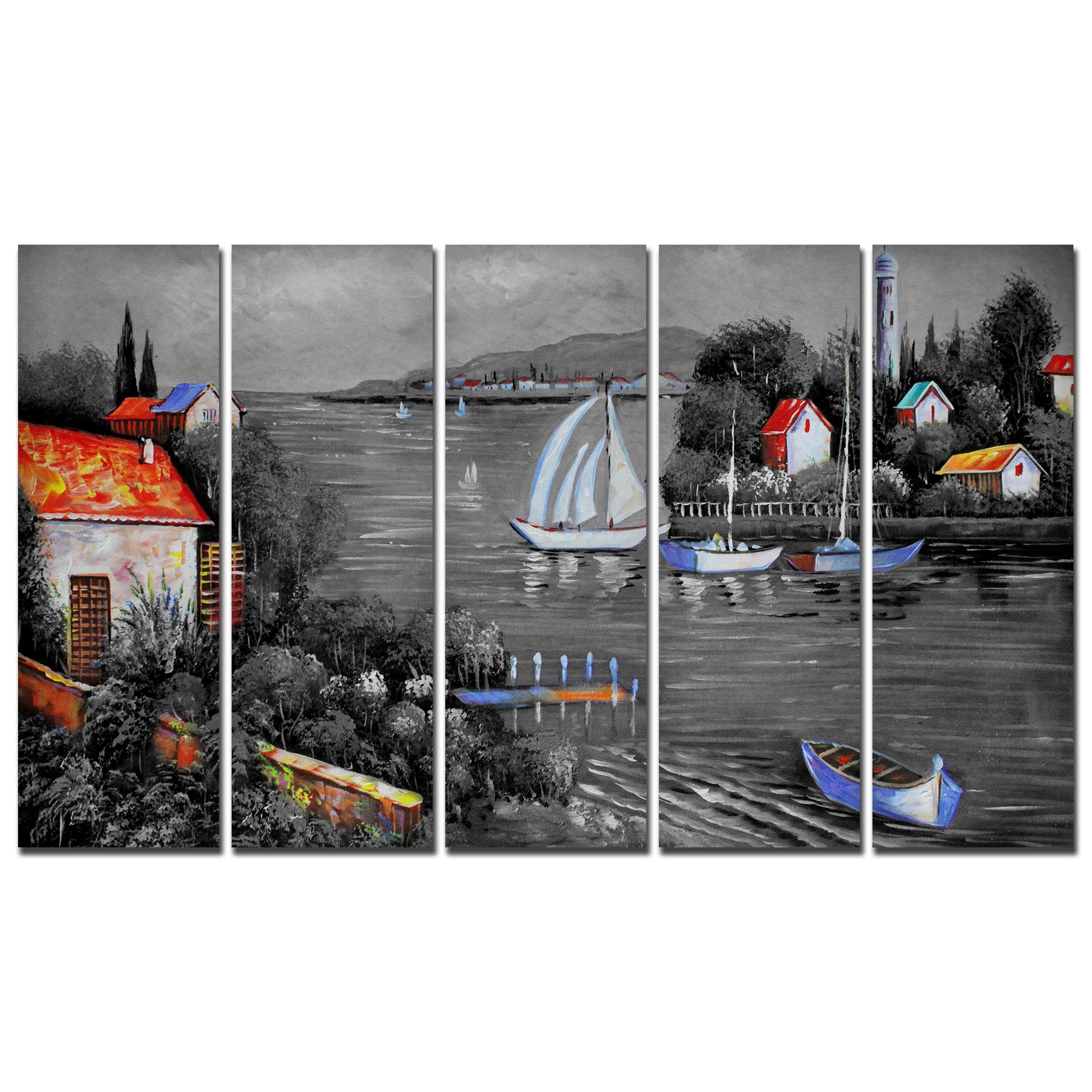 Beautiful Lake View Scenery Canvas Wall Painting Set of Five