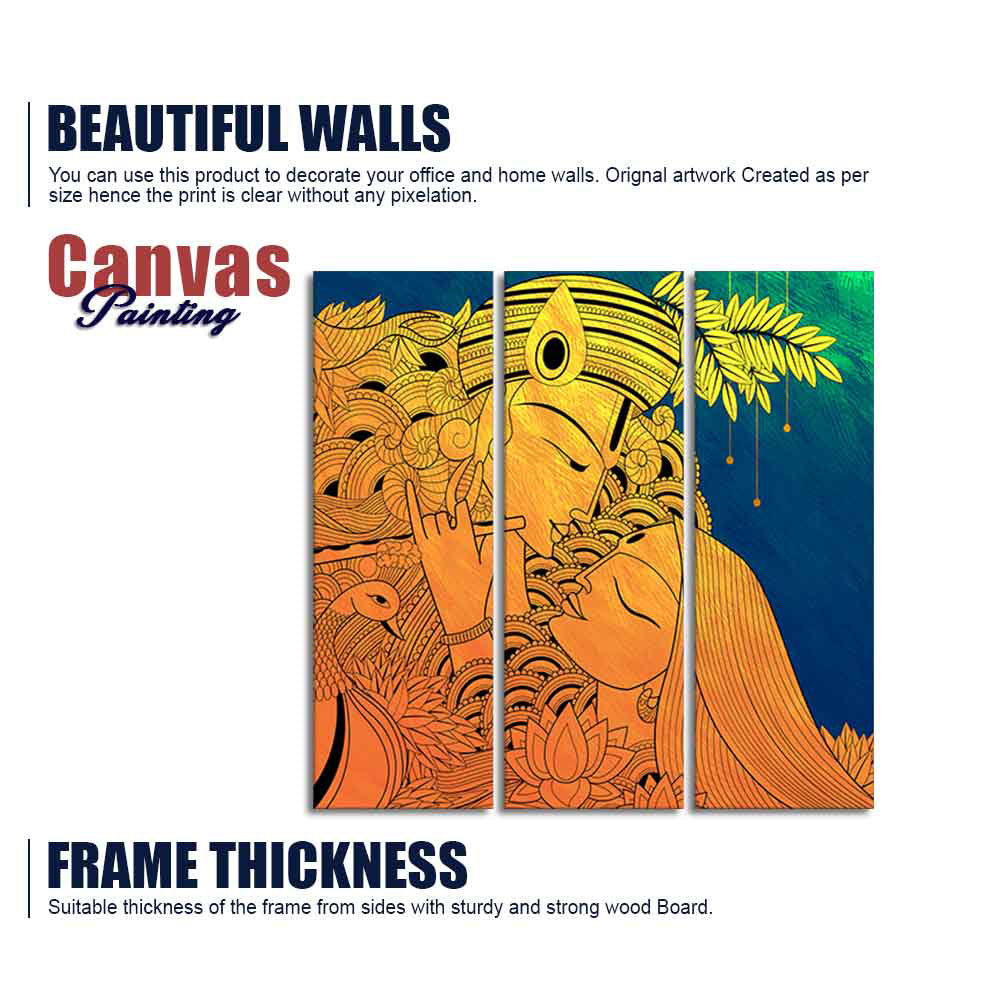 Beautiful Radha Krishna Wall Painting Modern Art 3 Panels