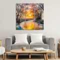 Beautiful Sunset at River Wall Painting Set of 3 Pieces