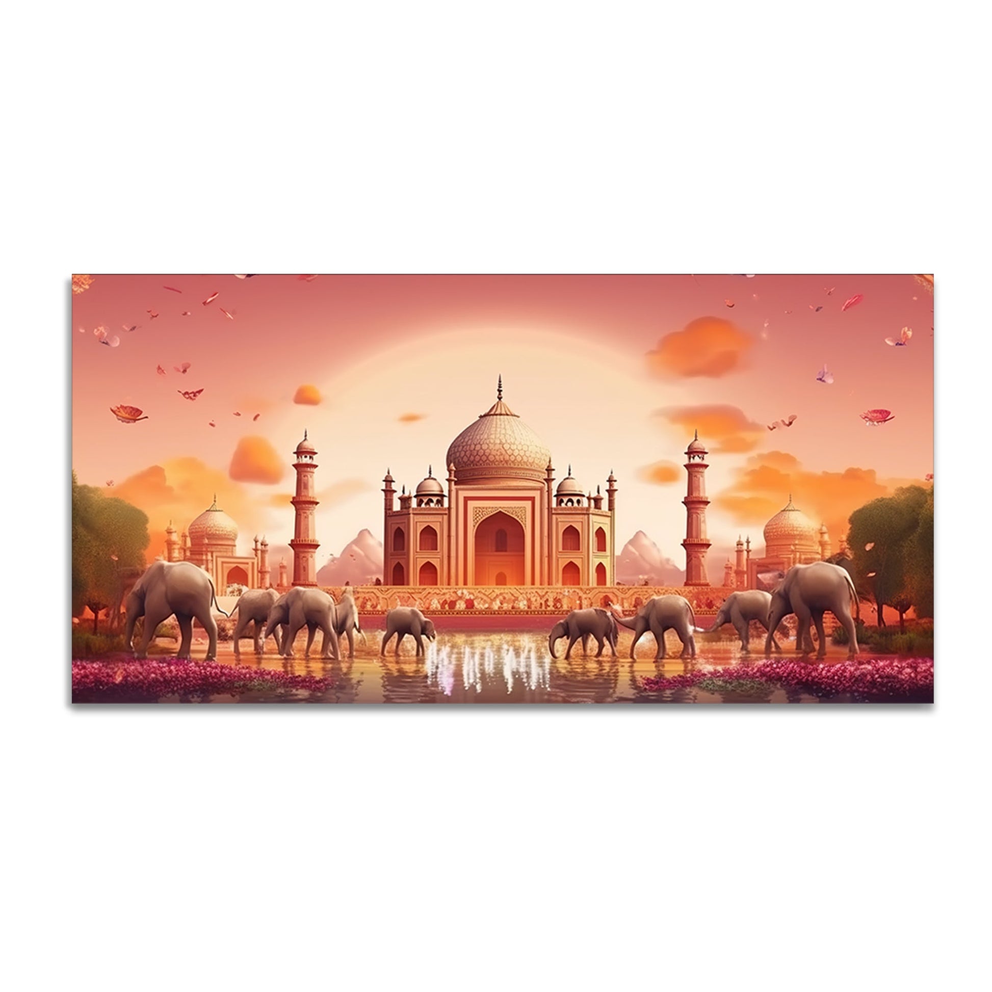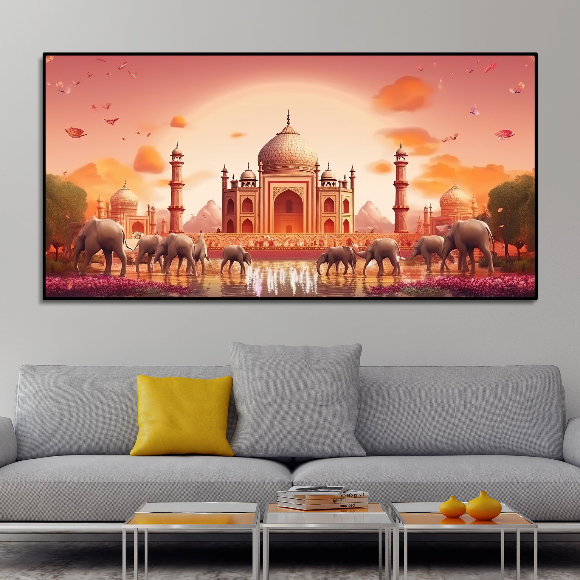 Beautiful Taj Mahal Scenery Premium Canvas Wall Painting
