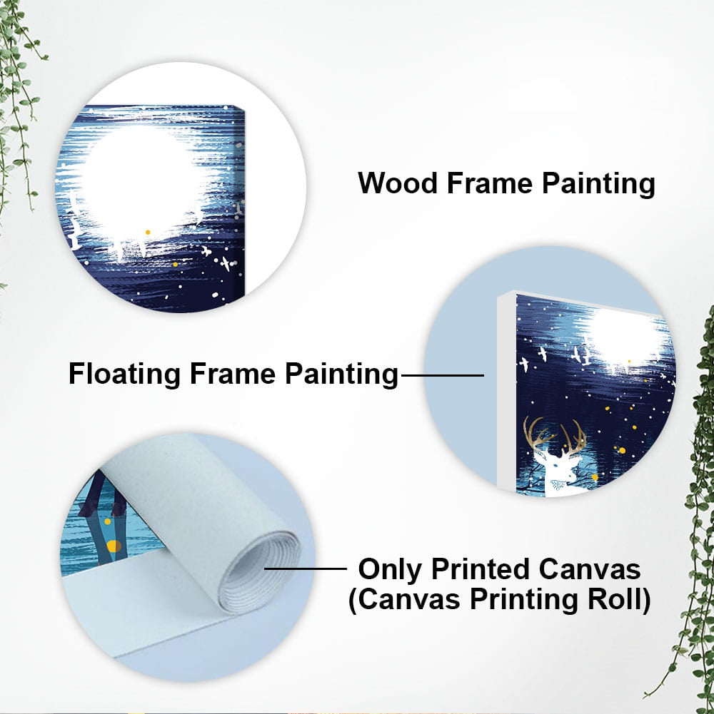 Beautiful White Deer in Full Moon Night Premium Canvas Wall Painting