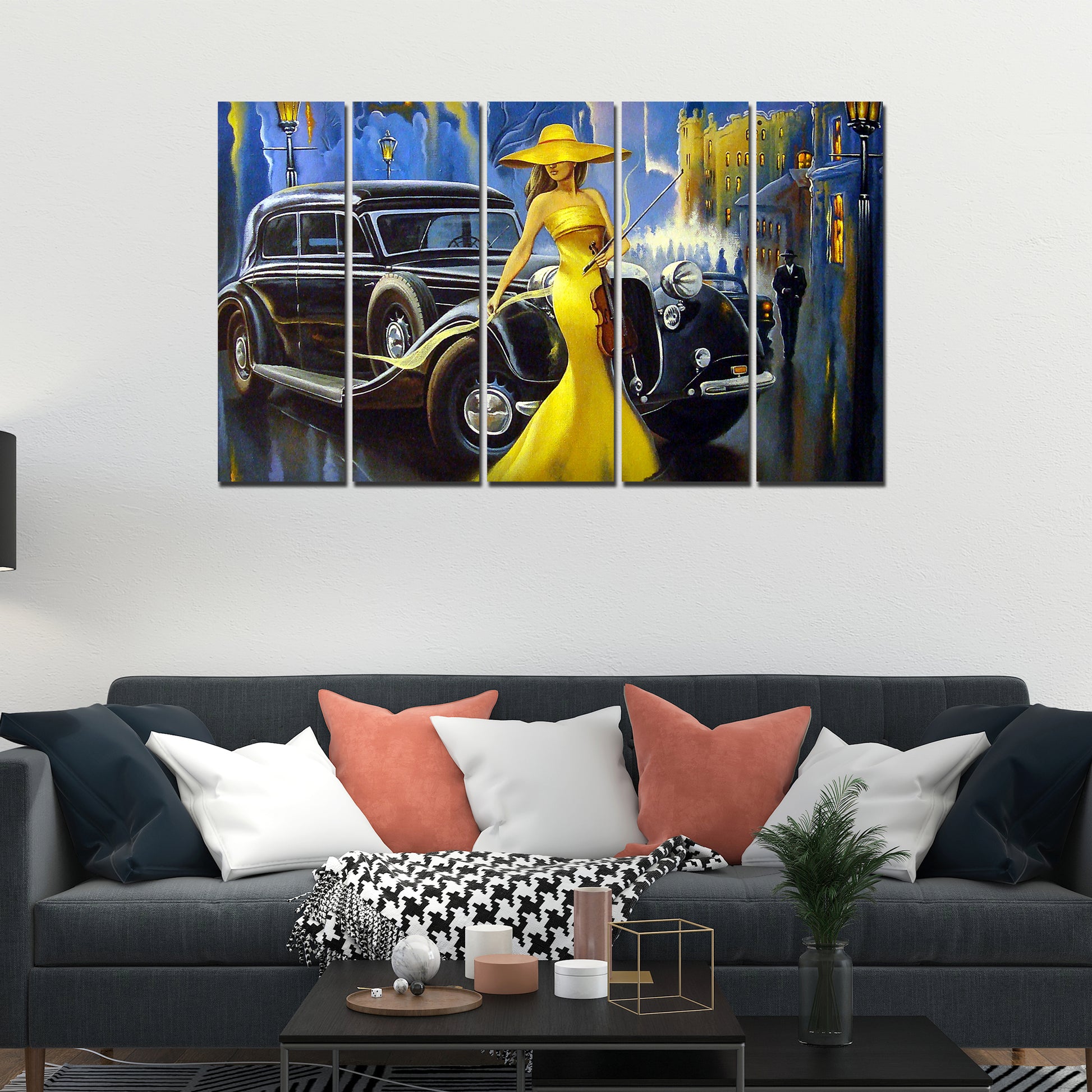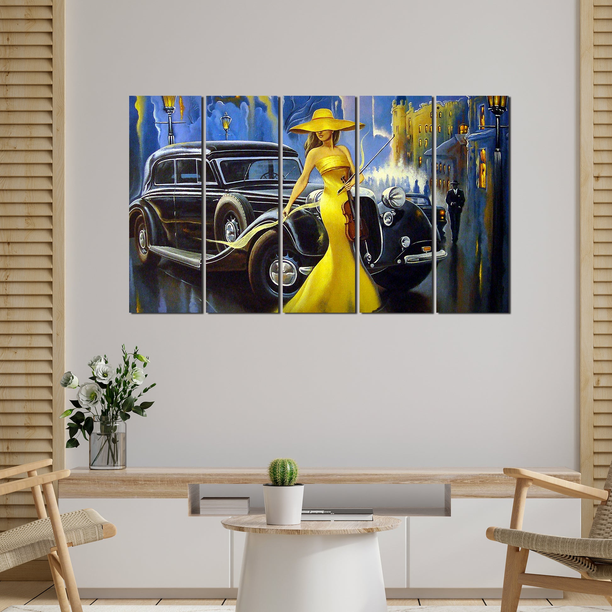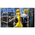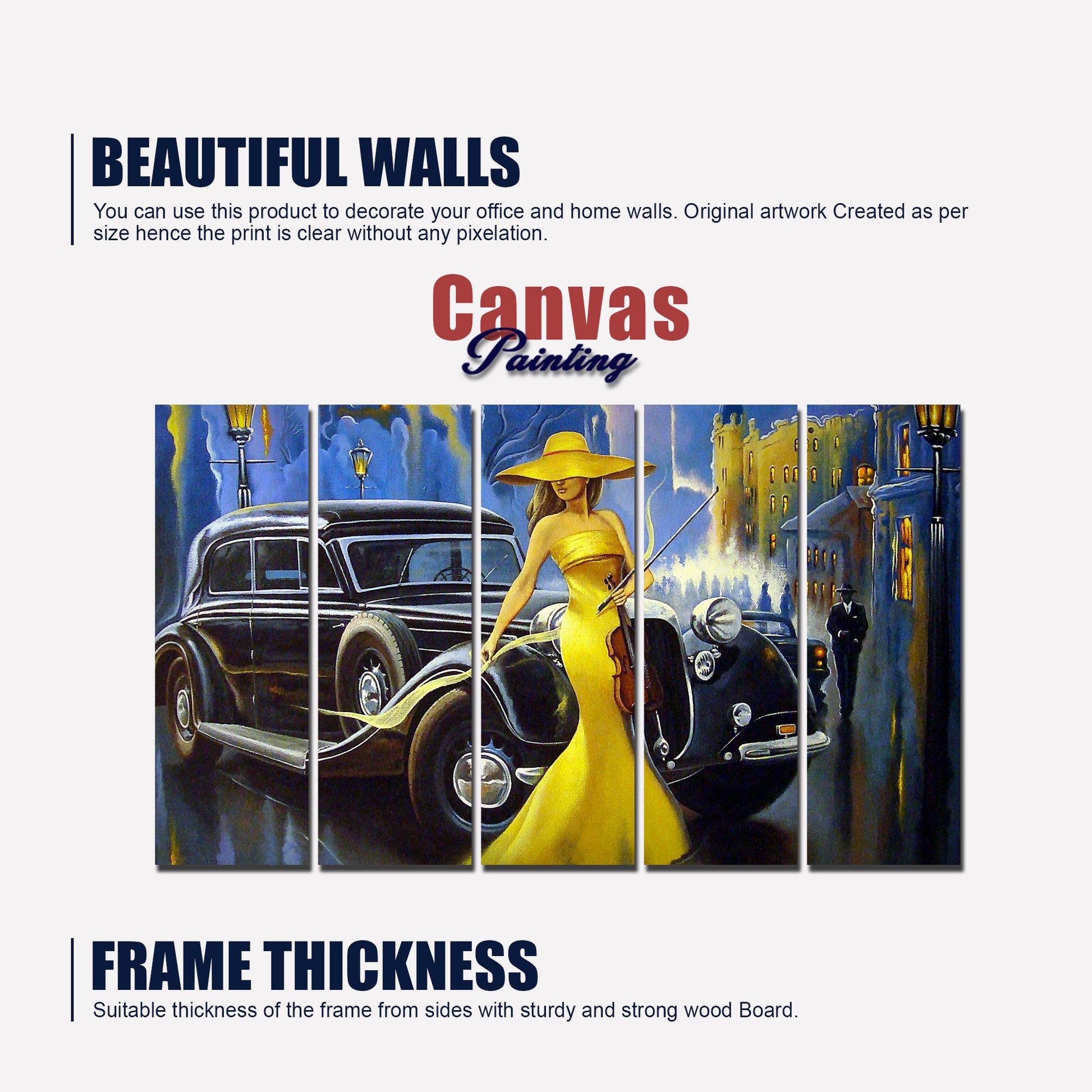 Beautiful Women with car Canvas Wall Painting 5 Pieces