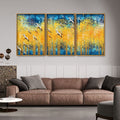 Birds Flying Over Golden Trees Forest Floating Canvas Wall Painting Set of Three