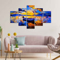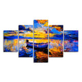 Boat at Colorful Sunset Canvas Wall Painting Five Pieces