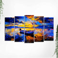 Boat at Colorful Sunset Canvas Wall Painting of Five Pieces
