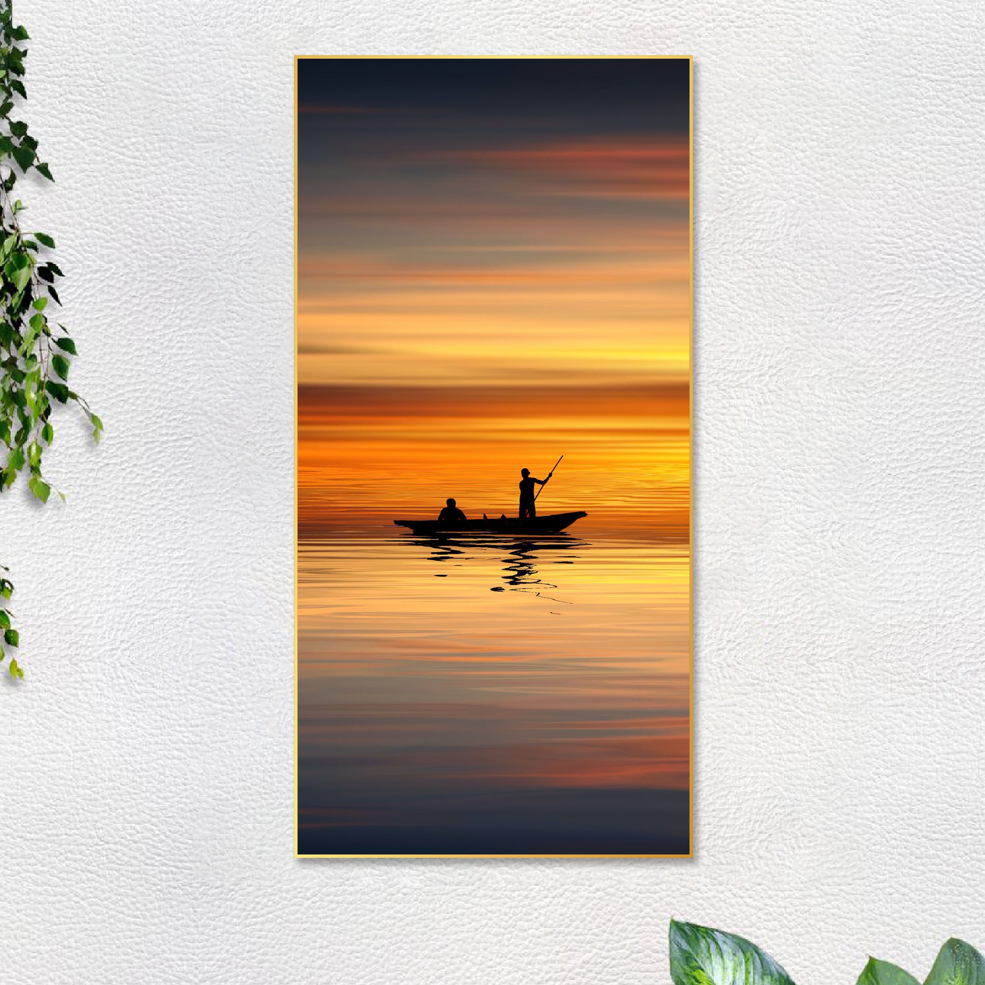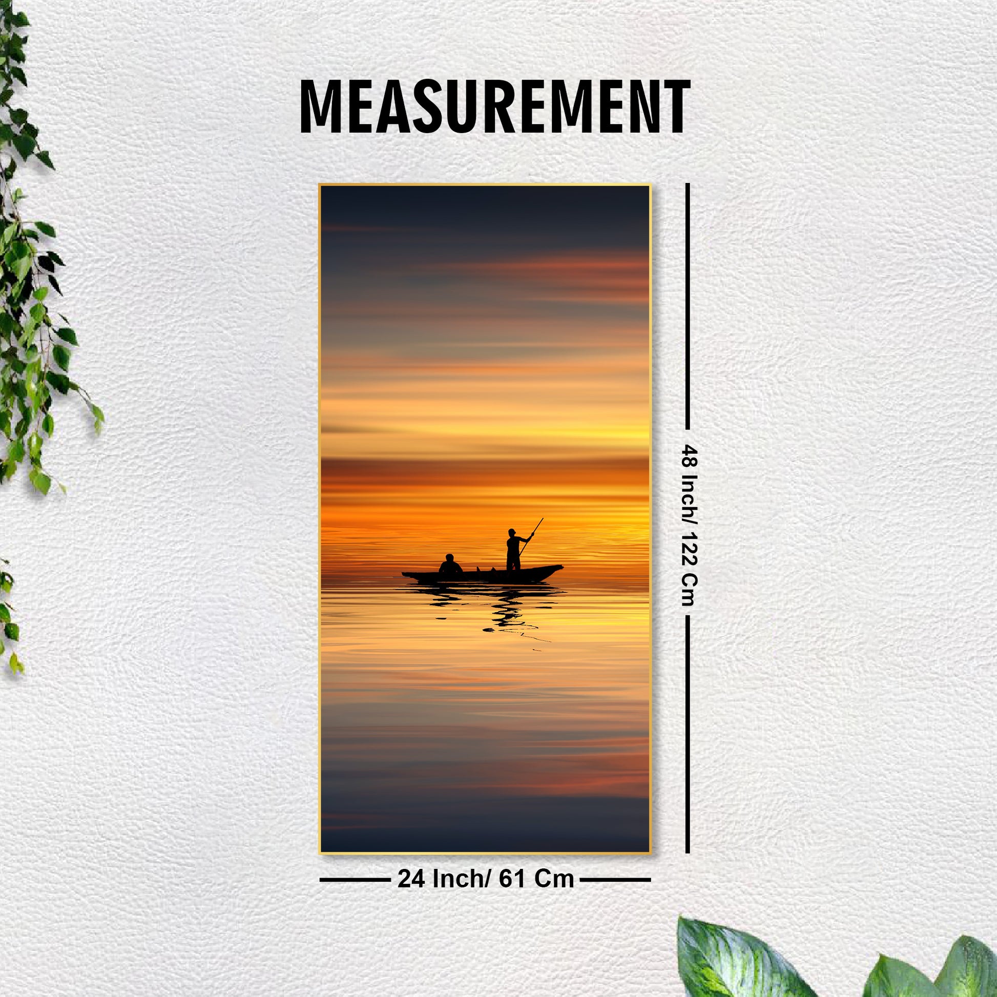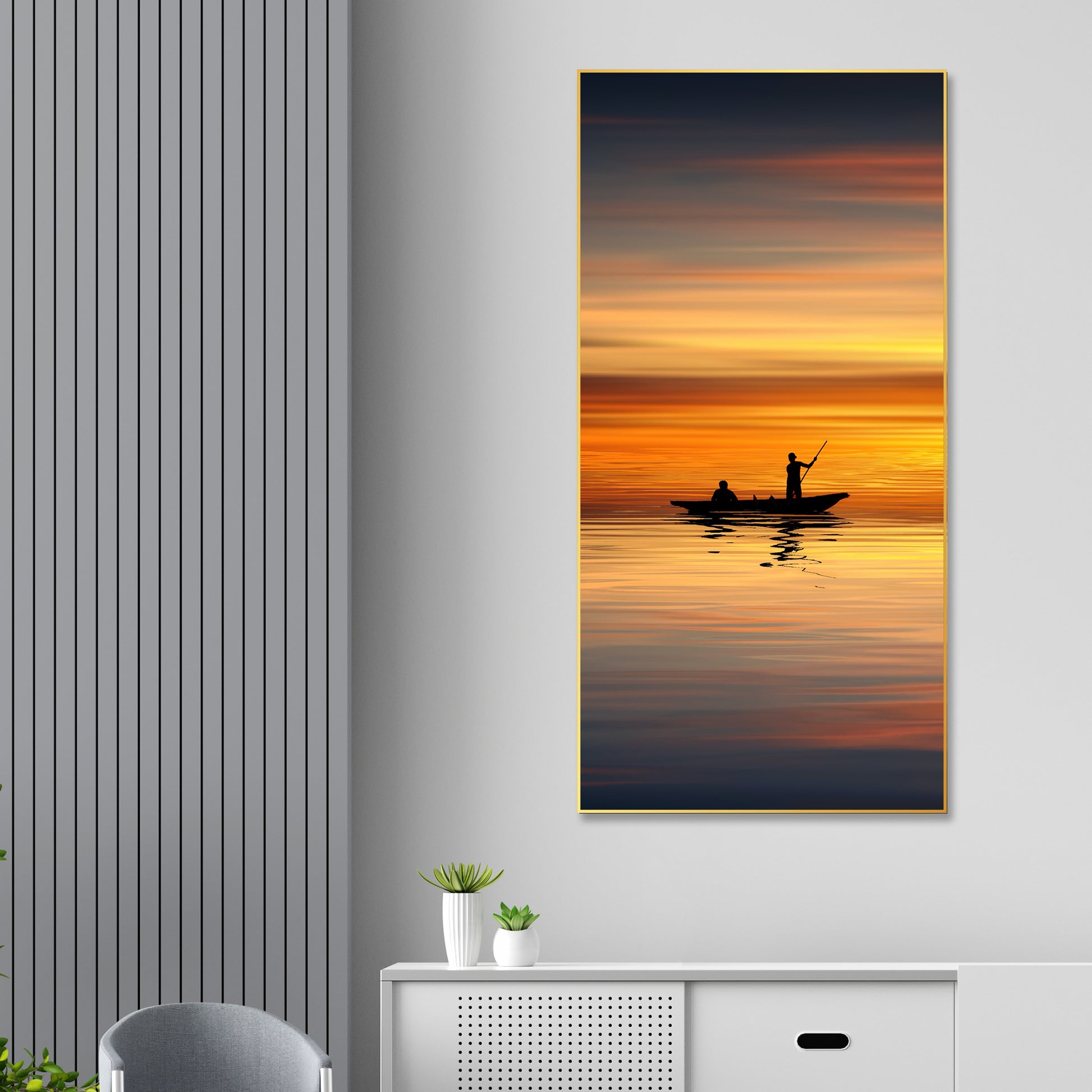 Boat Sailing at Sunset Floating Canvas Wall Painting