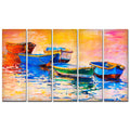 Boats and Sunset Canvas Wall Painting 5 Pieces