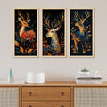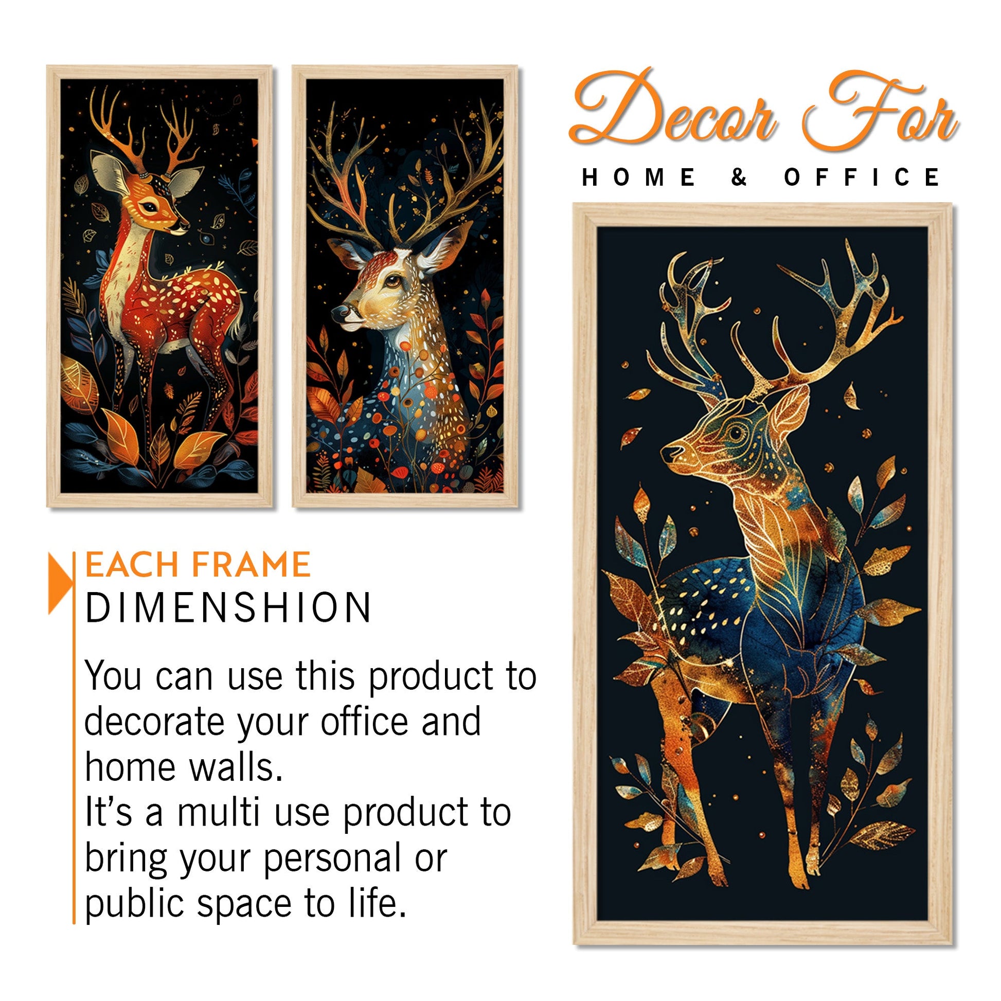 Brightly Colored Deer with Floral Pattern Wooden Wall Frame Set of Three